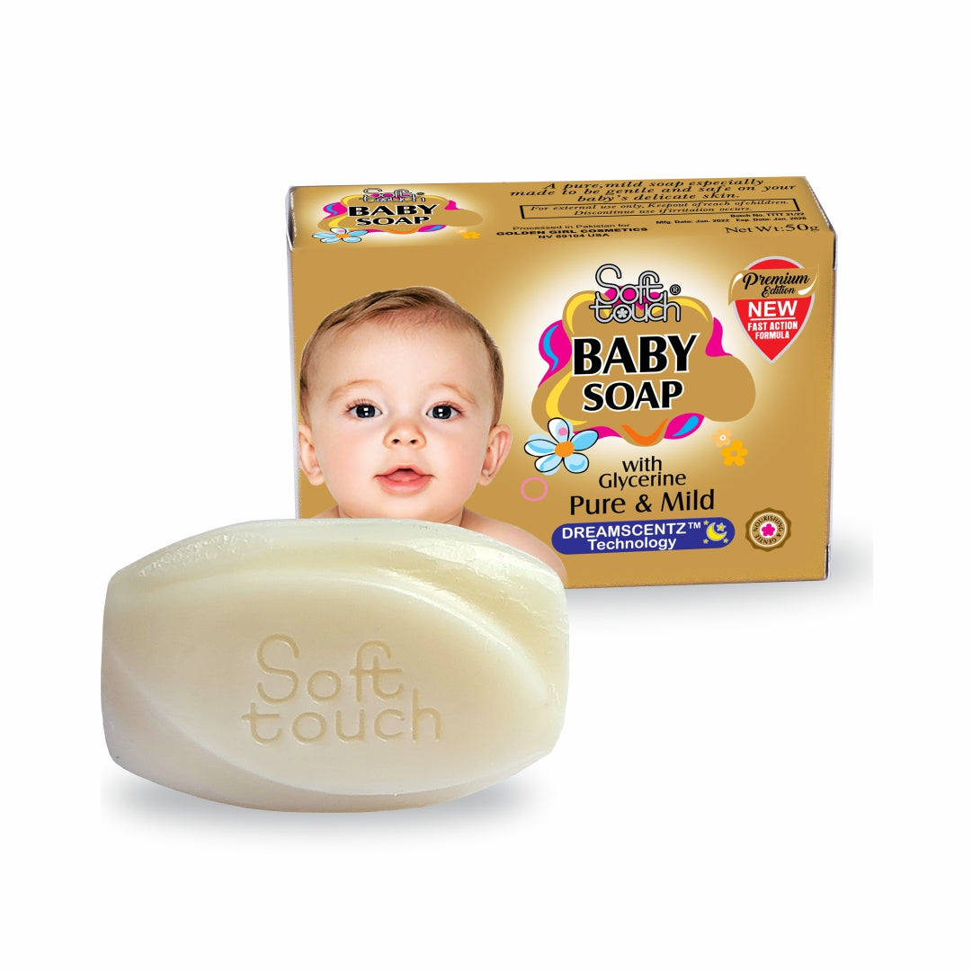Are you looking for baby soap for your newborn baby? Are you concerned about your infant's health and want to protect your baby from germs? Add Soft Touch baby soap into your baby's wardrobe as it is rated as the best soap for babies in Pakistan by our consumers.