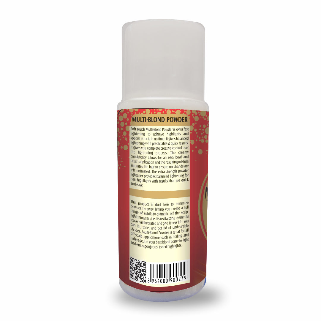 Bleach Powder Strong by Soft Touch Golden Girl is a newer method for streaking and highlighting hairs. It must always be mixed with Oxidizing Emulsion volume 40 to give you the superior action. The choice of the Oxidizing Emulsion is very important as the higher the volume, the stronger and quicker the streaks will be. Bleach Powder is fine-gained and super air floated to give you maximum spread.