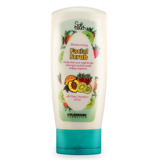Moisturizing Facial Scrub by Soft Touch Golden Girl, natural extracts of Peach, Strawberry, and Kiwi have been combined to create a perfect delicate moisturizing blend. Moisturizing facial scrub gently clears away dull, dry skin cells with a unique fruity fresh moisturizing formula to provide you a fresh smooth looking complexion.