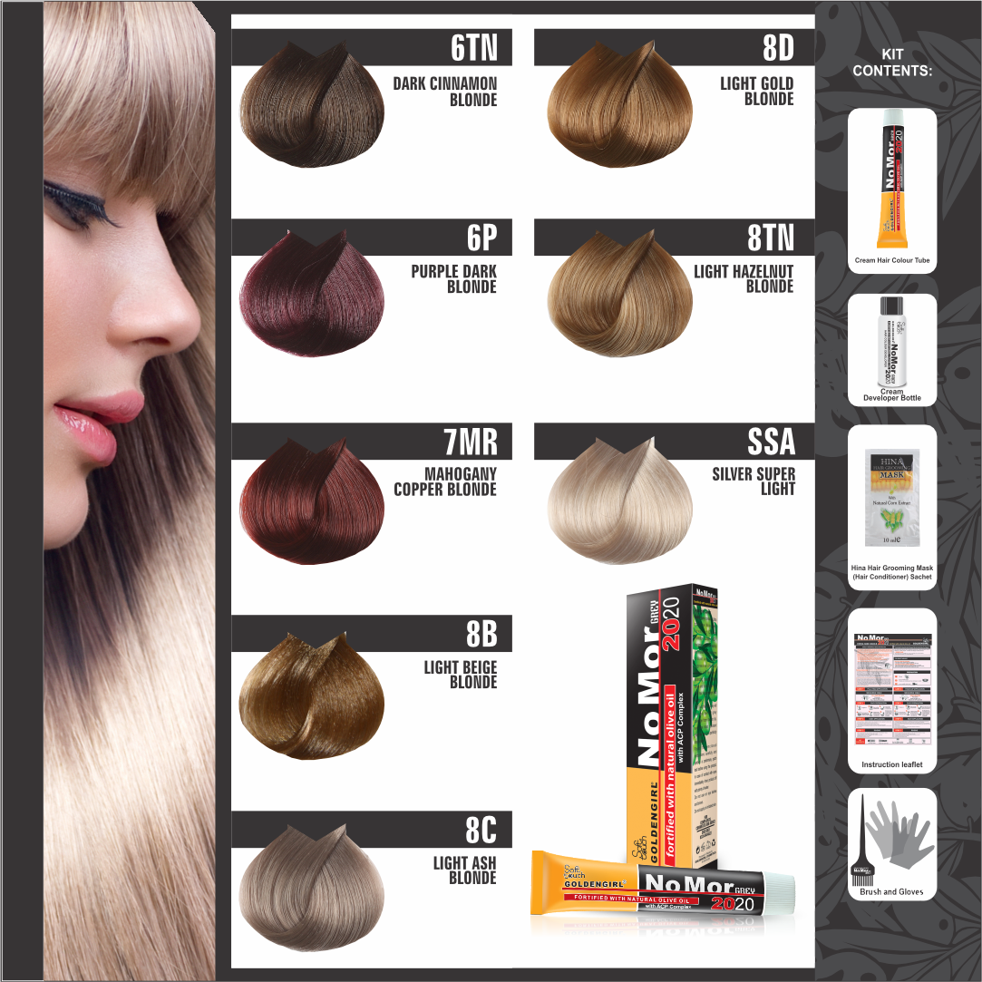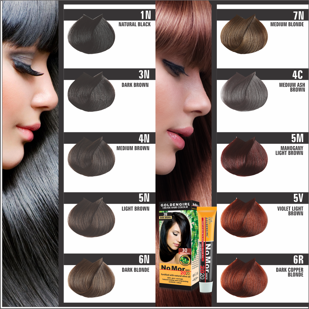 NoMor grey hair color in Pakistan is available in 18 distinct shades. It is the best hair care brand in Pakistan as it will give you perfect grey coverage from root to tip, even the most resistant grey hair is dyed perfectly and durably.