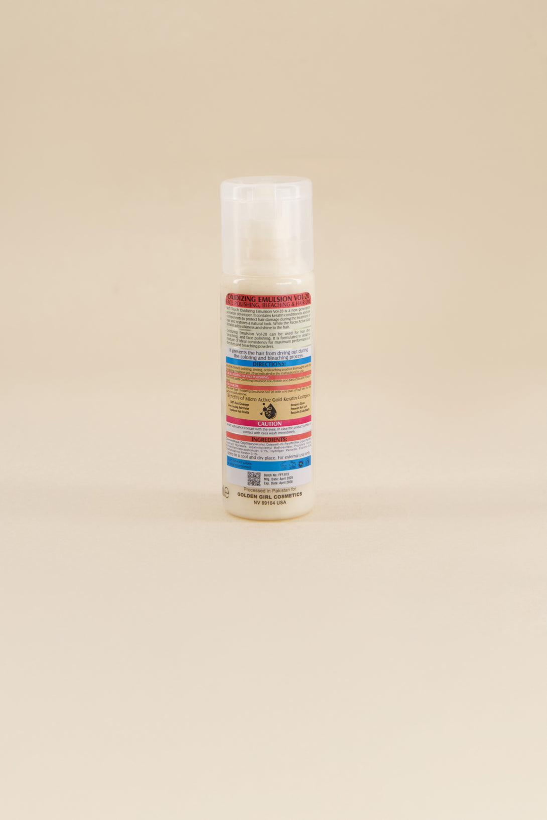 Oxidizing Emulsion is a new generation peroxide developer. It contains keratin conditioners and oily components to protect hair damage during the treatment of hairs and restores a natural look. Its ingredients add silkiness and shine to the hair.