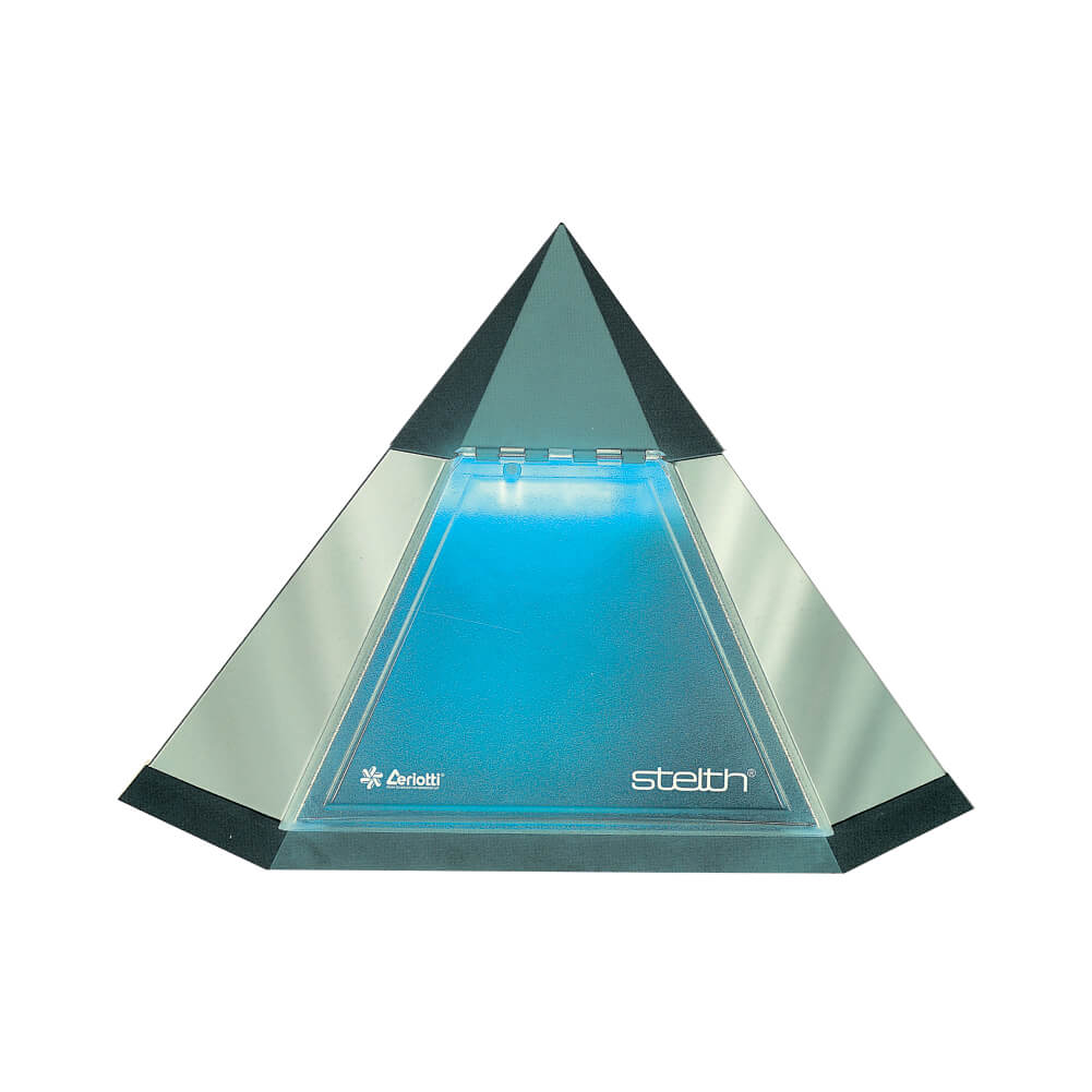 STELTH Professional sterilizing unit, with an innovative design and geometrical shape, in class 2, double proofing, working with a germicidal lamp with framework in stainless steel and details in plastic, general switch and safety switch. Small door with up-and-over opening system and door opening sensor.
