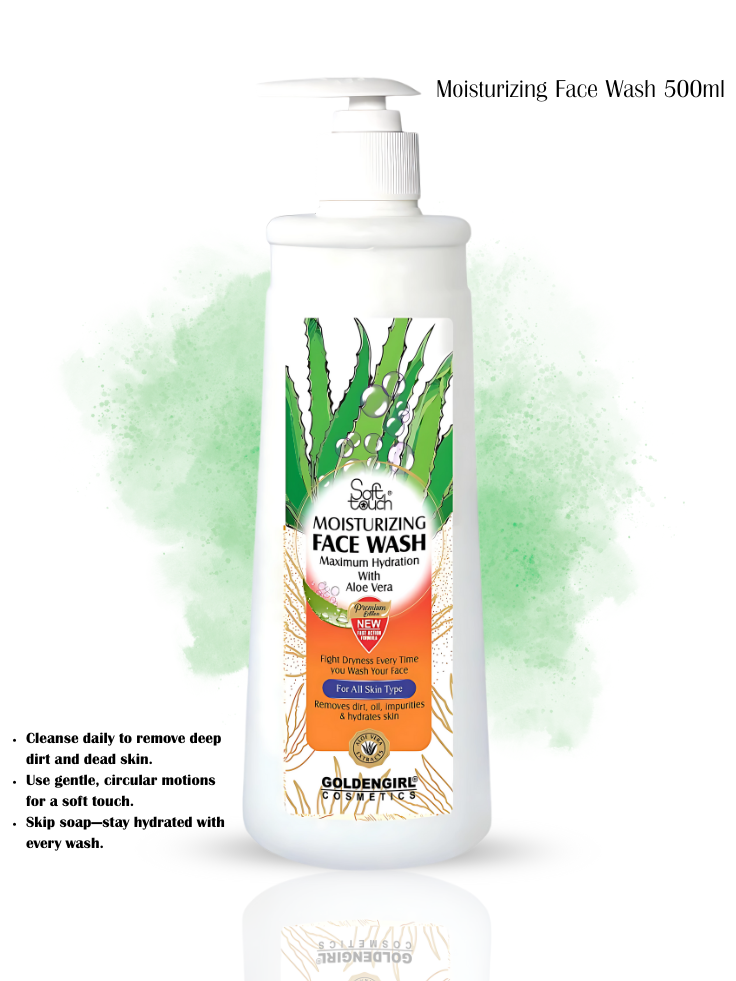 Moisturizing Face Wash: Ordinary soap is not just enough. Try a whole new way to wash your face. Soft Touch Moisturizing face Wash is a light refreshing gel that cleans thoroughly, gently but does not dry your skin like soap. It gently whisks away the ingrained dirt and dead skin cells that ordinary soap cannot remove. It leaves your skin feeling soft and smooth every time you wash your face.